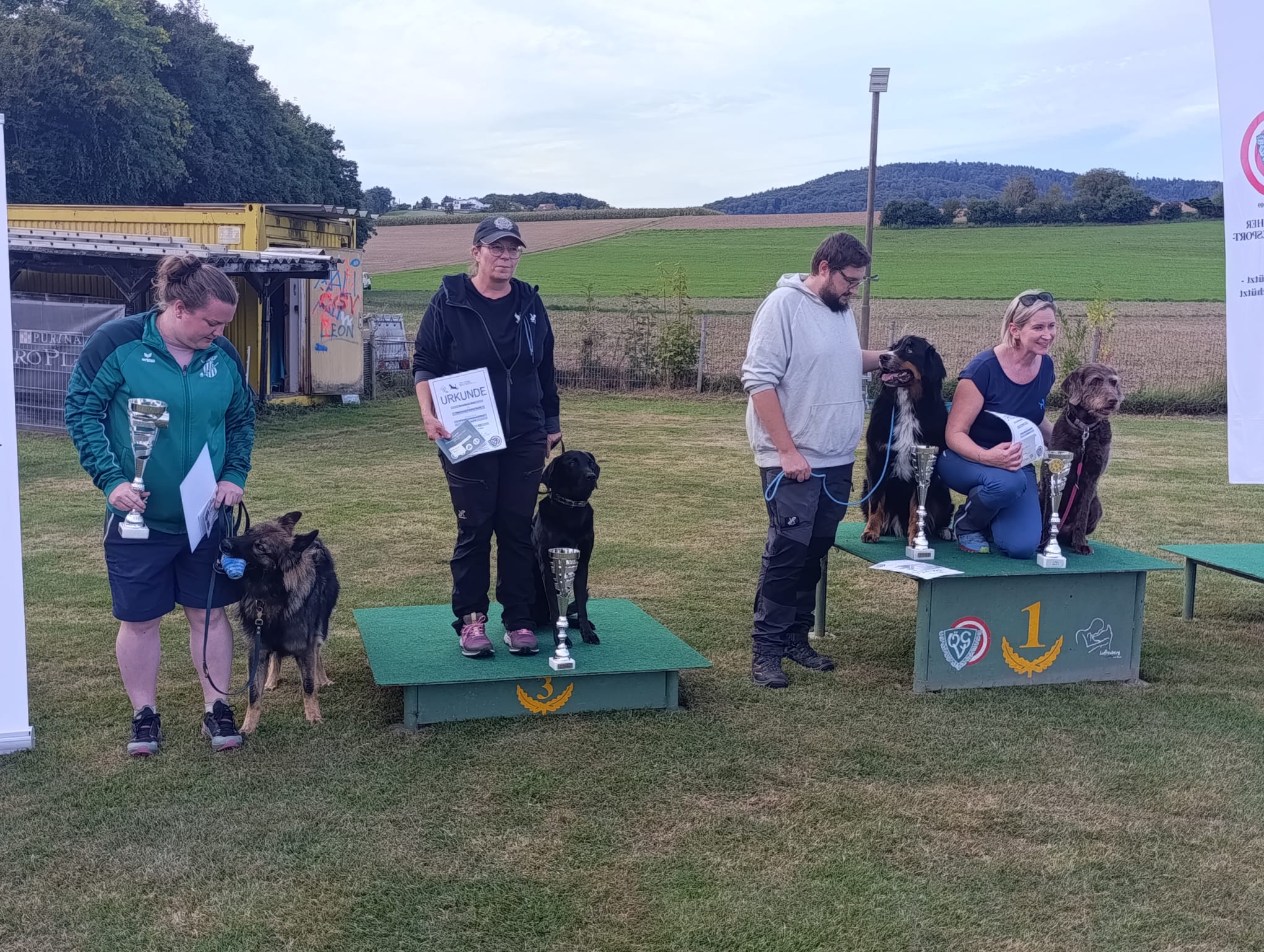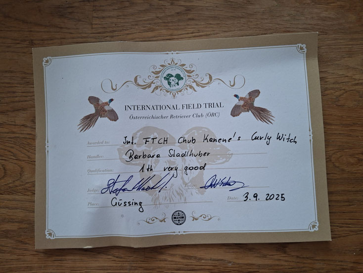 Curly gewinnt nur 3 Monate nach den Welpen den ersten FT der Saison mit very good